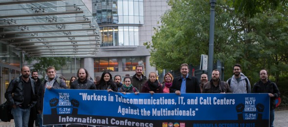 The International Conference of Trade Unions of Telecommunications, IT and Call Centers concluded in militant spirit. The conference next to the exchange of experience from the struggles of the workers from countries such as Spain, Kazakhstan, Turkey, France, Austria etc, talked about the problems and the important challenges that face the militant trade unions. Issues that were highlighted were the imposition of the anti workers’ policy of the EU, Europe 2020, which is specified in Telecom through the “Digital Agenda 2020”, the attack against the right to Strike, the new forms of Strike Breaking mechanisms (eg “Digital strikebreaking”), obstacles in trade union organization, new dangers for the health of the workers due to intensification of work, and others.