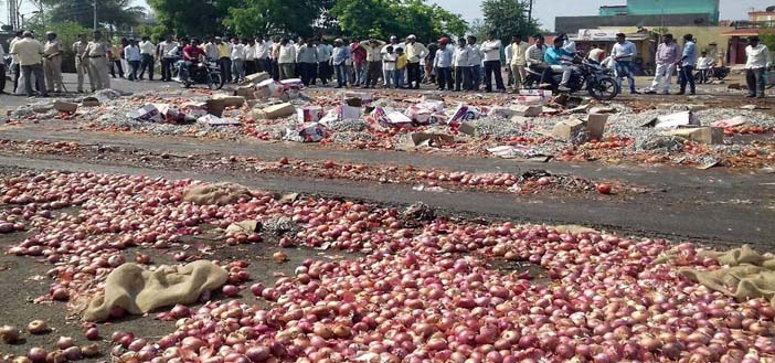 The photo above shows the roads blocked by onions which the farmers have put there in connection with the strike. In many places milks in large quantity were spilled on the road. The strike is continuing. Thousands of farmers have committed suicide unable to repay the loans. The government should act immediately and waive the loans to save the farmers.