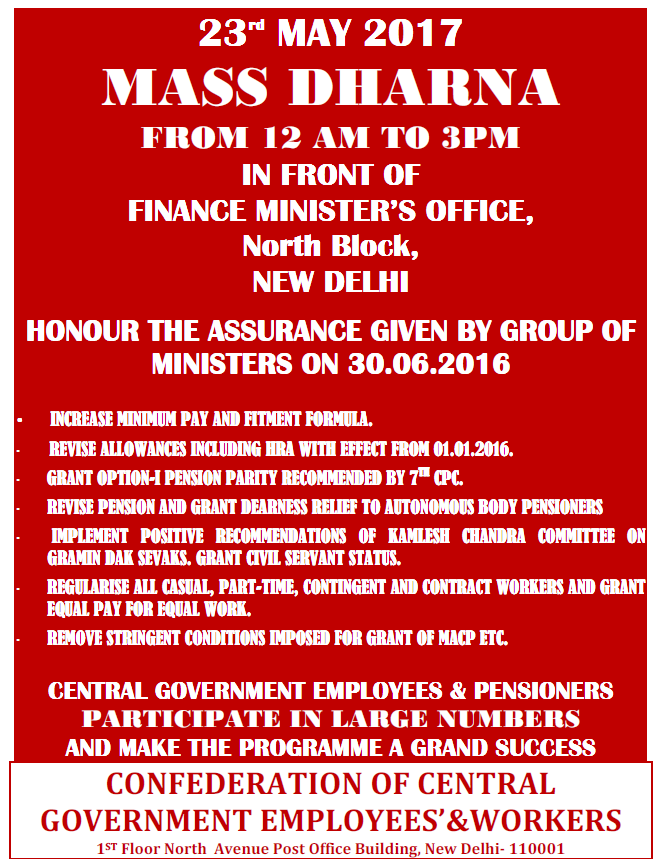 Massive Hunger Strike was organised in all centres by BSNL Executives and non-executives as per the call of the unions/associations on 13th July 2017 demanding early wage revision, pension revision, 30% supernumerary benefits to BSNL recruitees, pension contribution on basis of actual salary and also opposing the anti-unions directions issued by the BSNL management. The unions/associations called upon the workers to organise the 27th July Strike on these demands a complete success.