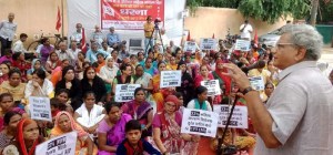 The dharma was also addressed by CPI(M) Central Committee Member Com.P.M.S Grewal, CPI(M) Delhi State Committee Members Asha Sharma, Maimoona Mollah, Rajeev Kunwar, Siddeshwar Shukla, Jagdish Sharma, Rampal, Neel Gagan and others. The dharna was presided over by CPI(M) Delhi State Committee Member Com. Nathu Prasad and CPI(M) Delhi State Secretary Com. K.M.Tiwari. (Courtesy: Ganashakti)