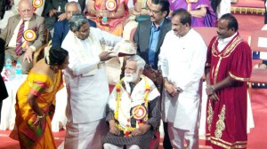 Comrade C.K.Gundanna, Veteran leader and long time Circle Secretary BSNLEU Karnataka Circle, has been awarded the prestigious ‘Rajyotsava Award’ by the Karnataka Government. The same was handed over to Com. Gundanna by Chief Minister Shri Sidharamayya on 1st November 2017. It is the highest award by the state government and is awarded for social justice to the society and Theatre Art. Com. Gundanna was the Secretary of ‘Samudaya’, the well known cultural society for a long time. Now he is also acting in some cinemas. It is to be mentioned here that he was attacked a few years back by the Hindu extremists when a progressive street drama was being enacted. Family of Com. Gundanna and many comrades from BSNL participated in the award giving function.