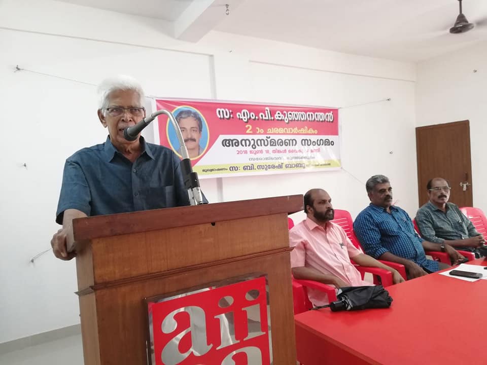 Kozhikode District Branch of AIBDPA, BSNLEU and BSNLCCWF oraganized a well participated meeting in connection with the 2nd death anniversary of Com.M.P.Kunhanandan, former CHQ Treasurer on 18-06-2018 at Saroj Bhawan, Kozhikode. The house paid homage to the memory of Com. MPK. Com. V,A.N.Namboodiri, Advisor AIBDPA delivered the commemorative address. Com. B.Suresh Babu (State Library Council) spoke on the subject , ” Left alternative against globalisation “. Com.M.Vijayakumar, National Organising Secretary, BSNLEU controlled the proceedings. Com.P.V.Chandrasekharan, District Secretary AIBDPA welcomed the participants and Com. P.P.Asokan, Secretary BSNLCCWF proposed vote of thinks. Com.P.K.Vineetha,wife of Com. Kunhanandan and family members were present.