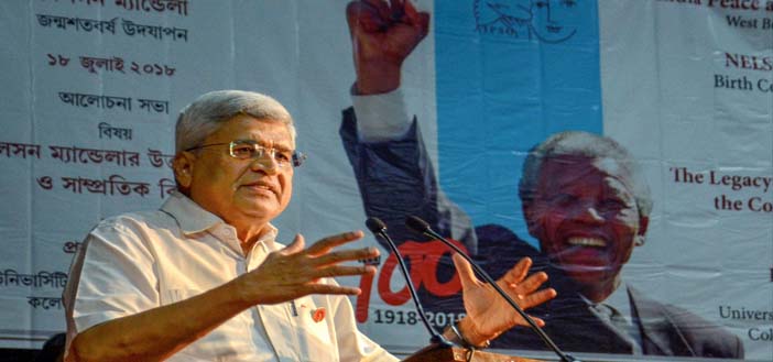 Speaking in a Programme ,today (18-07-2018) in Kolkata , to commemorate the Birth Centenary of Legendary South African Statesman Nelson Mandela, CPI(M) Politbureau Member Prakash Karat has hailed the life and works of Nelson Mandela and termed him as a liberator at par with liberators like Mao Tse Tung , Fidel Castro or Ho Chi Minn. He lamented that Nelson Mandela when he came out of the Jail , it was changed circumstance for him as the 60’s realities of the presence of Soviet Union , was absent. Still he negotiated the Freedom of his country, and at the same time had instructed the ANC leadership not to withdraw the armed struggle until a certain stage of discussion has been reached . He was Liberator who believed in Marxism and dialectical materialism. Along with other ANC stalwarts like Walter Cislu and Ahmad Cathrada , he led the valiant fight with the Bastion of imperialism , the apartheid South Africa , whose policy of racial segregation is even today being followed by the oppressors of the Palestinian people . He also said that 20th Century being the century of liberation struggle from the clutches of the imperialism and colonialism , the last major struggle of liberation of the Century had been led by Mandela, while Palestinian struggle is still unfinished.