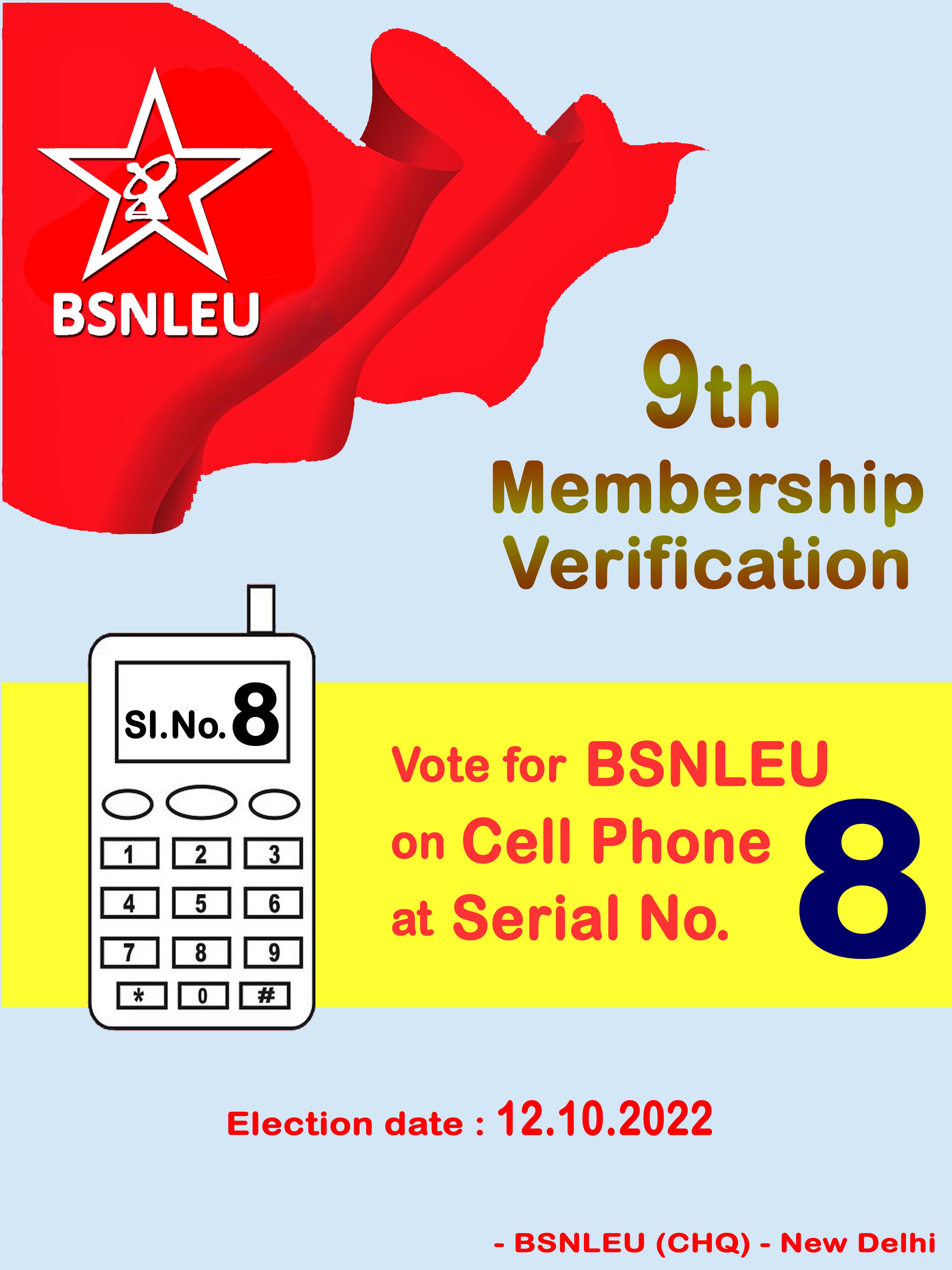 VOTE FOR BSNLEU IN 9TH MEMBERSHIP VERIFICATION.