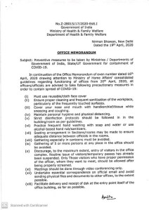 Considering the existing situation in the country, the Central government has extended the Lock Down up to 3rd May 2020. The strict conditions existing will continue up to 20th April.